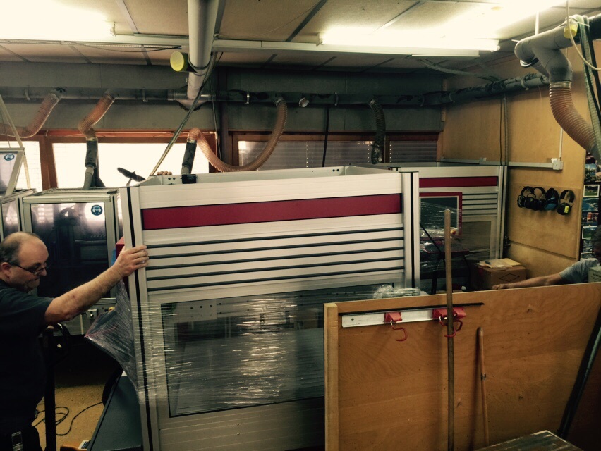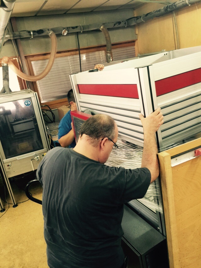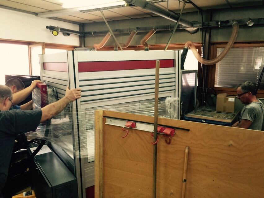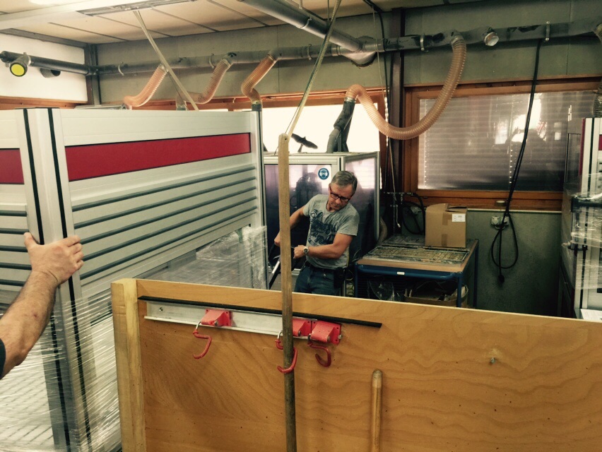 Zwei moderne CNC-Maschinen ergänzen den Maschinenpark der Kunststoffverarbeitung. Damit erhöhen wir die Kapazität für die Herstellung komplexer Kunststoff-Artikel und können flexibel auf Kundenwünsche eingehen. Der Bereichsleiter Ruedi Kirchhofer und sein Team haben am 13. August 2015 die "Zwillinge" im Fabrikgebäude installiert. Sie werden bereits in den nächsten Tagen zum Einsatz kommen.