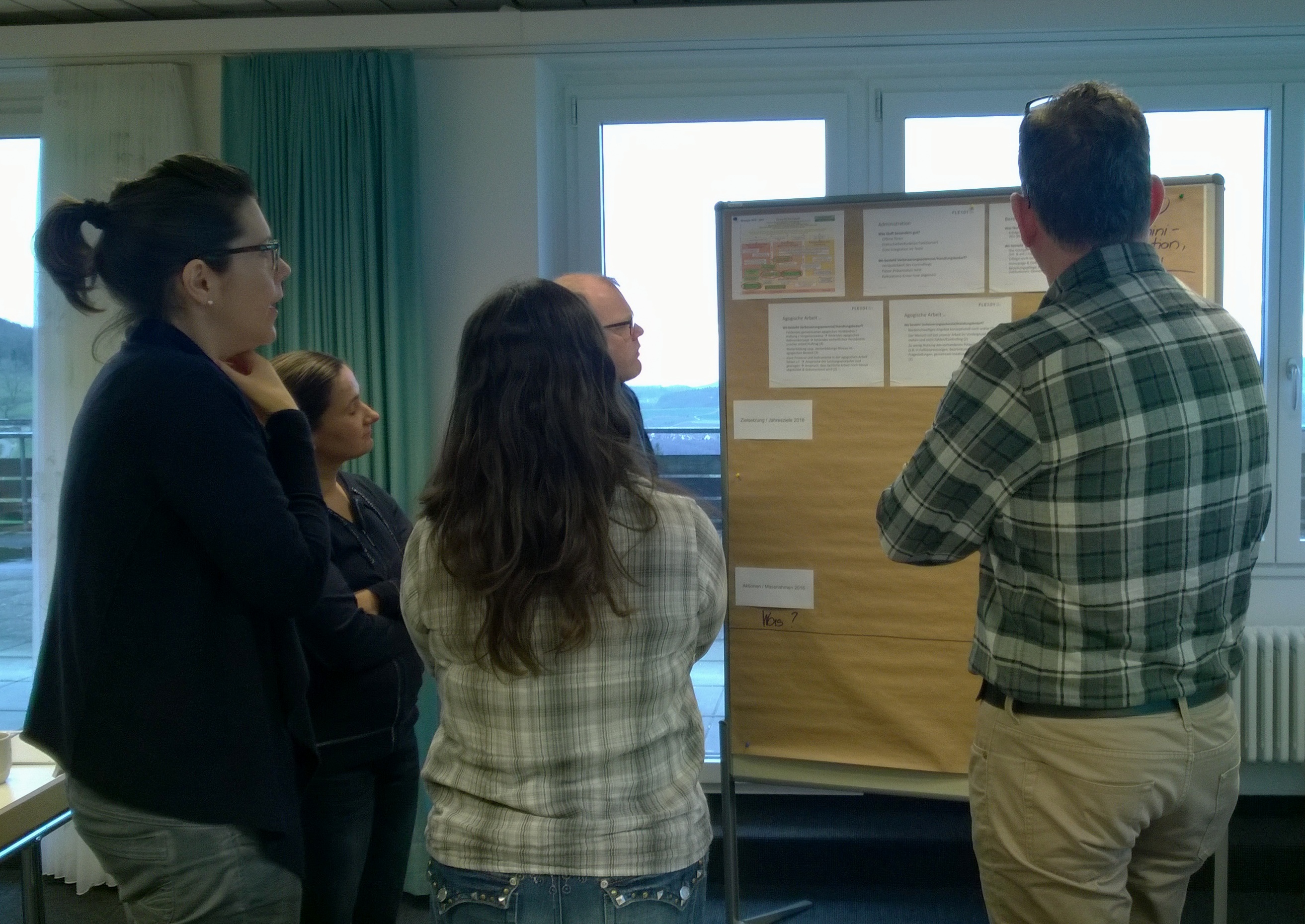 Das Flexor-Team ist am Freitag, 8. Januar 2016, gemeinsam ins neue Jahr gestartet. Der Präsident des Vereins Werkhaus Erich Geiser und die Flexor-Institutionsleiterin Nicole Segginger haben die Zielsetzungen für das Jahr 2016 vorgestellt. Anschliessend haben die Mitarbeitenden in Gruppen an den Umsetzungsmassnahmen pro Bereich gearbeitet. Unterstützt wurden sie von Véronique Achermann (http://www.oktoplus.ch/), die kompetent durch den Tag moderierte.