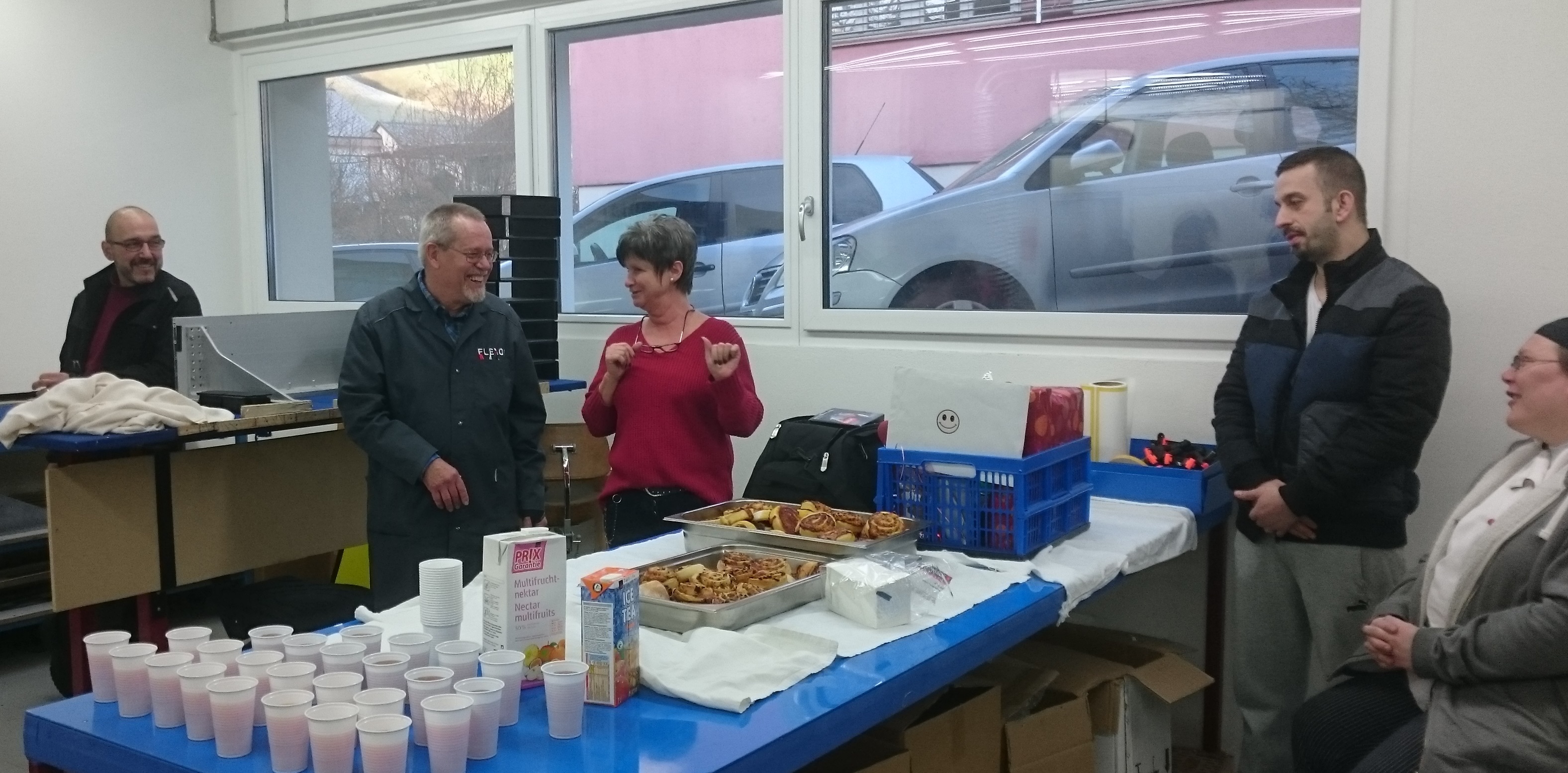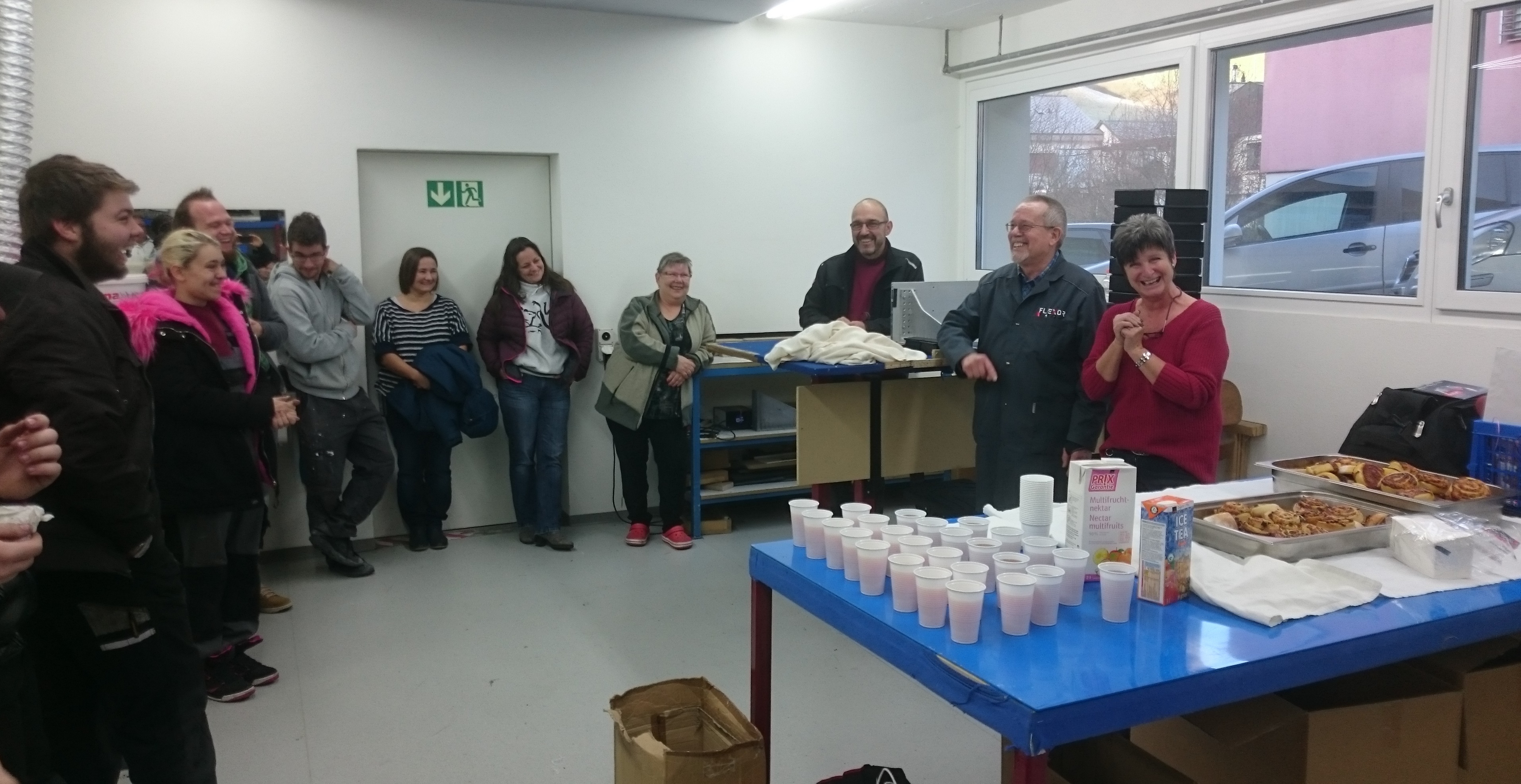 Mit weinenden und lachenden Augen haben wir am 9. Dezember 2016 unseren langjährigen Mitarbeiter William Sauser am 9. Dezember 2016 in seinen wohlverdienten Ruhestand verabschiedet. Lachend, weil uns William auch an diesem Tag mit seinem Humor unterhielt. William Sauser zeigte über 16 Jahren vollen Einsatz im Bereich Kunststoff. Seine kollegiale, humorvolle Art werden wir vermissen.